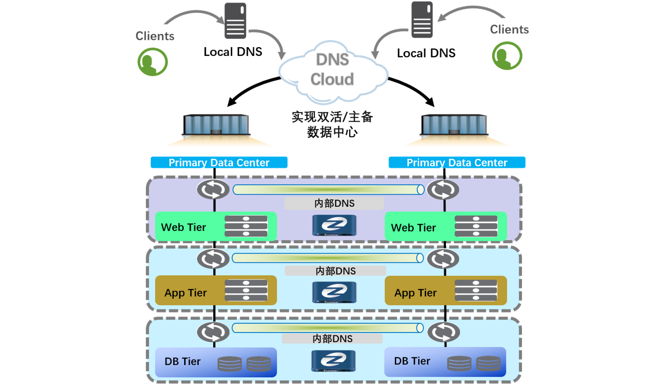 数据中心为提高应用系统的可靠性,实现多站点资源分布式部署,提高资源的利用率,需要多站点的应用系统构建成多活或主备工作模式。为了与IP地址解耦,通常会使用域名系统(DNS)来调度这些应用。J9国际站 J9 多数据中心域名(DNS)解决方案以IT整体架构为蓝图,以业务陆续在性保障为目标,利用域名解析门户应用调度功能,可将用户访问流量引流到可靠、可用的数据中心进行访问,既能保证用户的使用体验,又能达到应用容灾的无感切换的目的。